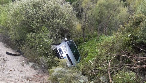 El rescate fue complicado porque el turismo se hallaba en una zona de difícil visibilidad, entre arbustos, como muestra la imagen que acompaña a esta noticia.