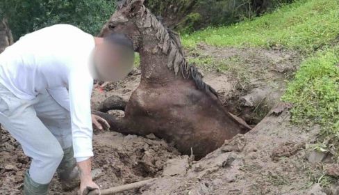 Según detalla el CBPC, el caballo se encontró exhausto tras intentar salir sin éxito del agujero, que había quedado lleno de barro debido a las recientes lluvias. La zona presentaba condiciones de difícil acceso, lo que aumentaba la complejidad de la operación.