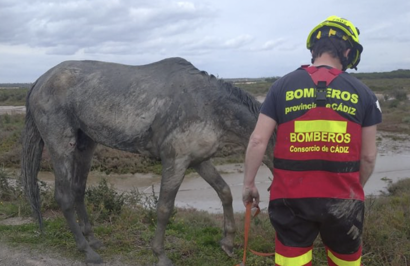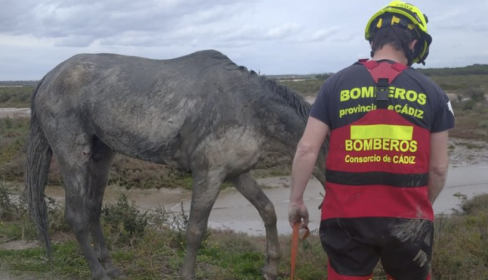 Efectivos del Consorcio de Bomberos de la Provincia de Cádiz, adscritos al Parque de Chiclana, han rescatado a un caballo que había caídoa al caño de un estero, en la tarde de este domingo.