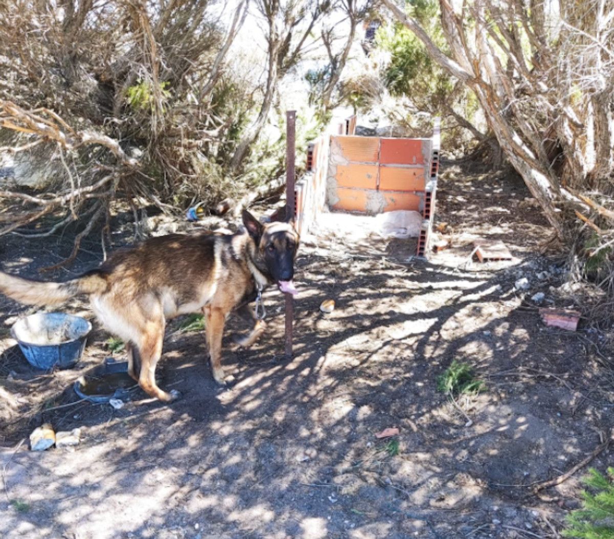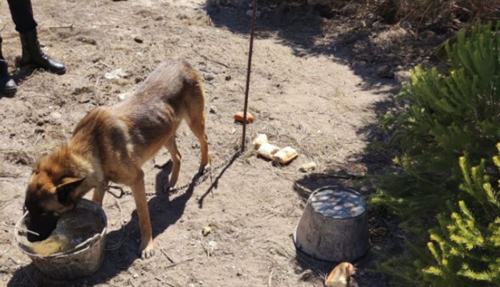 Los perros estaban atados con cadenas metálicas de un metro de longitud y, a su alrededor, se observaban cubos pequeños de agua sucia enterrados en el suelo. Los agentes han detallado que había trozos de pan duro, estaban "expuestos al sol y sin cobijo alguno".