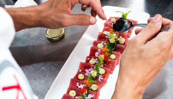 "Una montaña rusa de sabores, que dan la vuelta al mundo". Así se presenta Mezkla Zahara, uno de los restaurantes recomendados por la Guía Repsol 2025, que propone una experiencia que combina alta cocina, fusión internacional y el producto estrella de la zona: el atún rojo de almadraba.