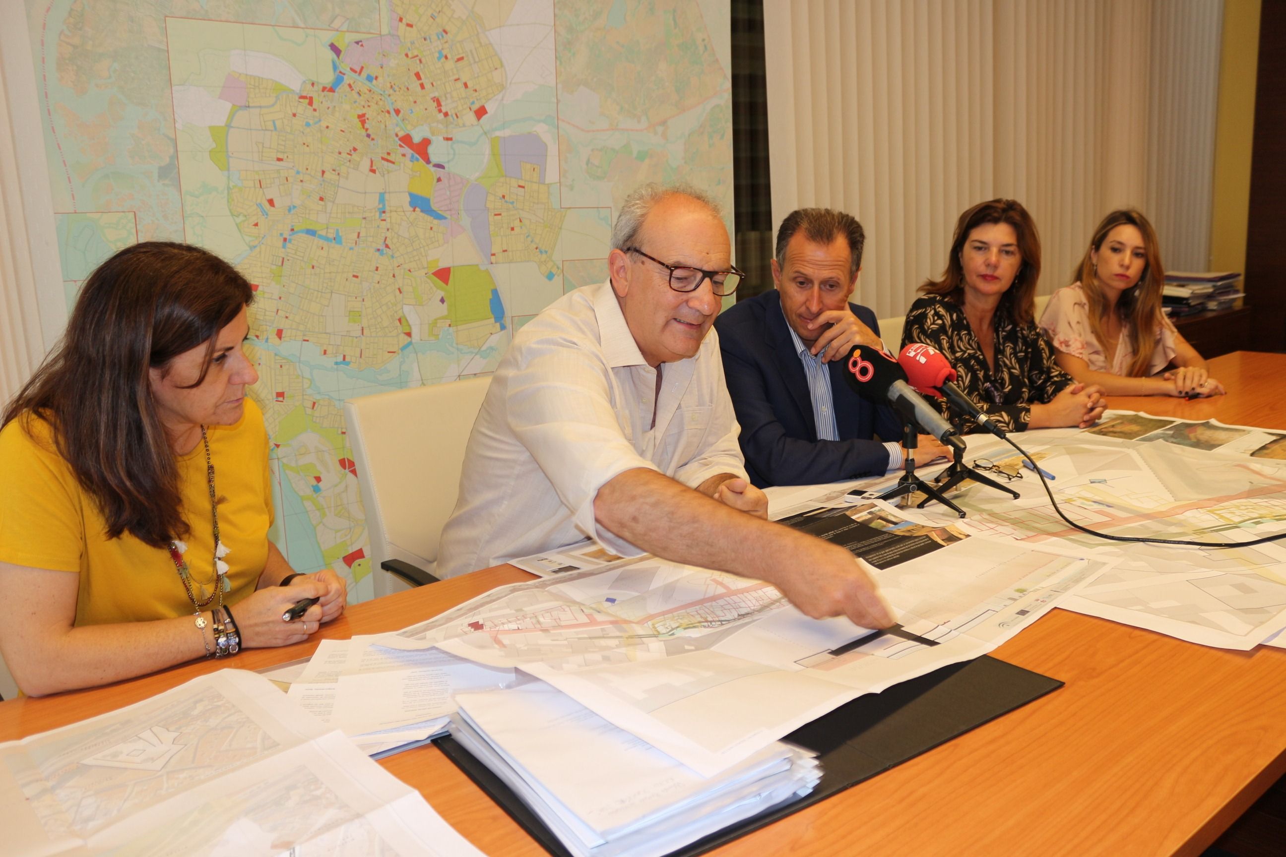 El alcalde de Chiclana, José María Román, y el arquitecto municipal, Juan Antonio de la Mata, acompañados de la delegada municipal de Cultura, Pepa Vela, la arqueóloga Paloma Bueno y la arquitecta Elisa Sánchez, han explicado la primera fase del gran proyecto cultural que el Ayuntamiento de Chiclana tiene previsto ejecutar en el Cerro del Castillo, con el objetivo de poner en valor los yacimientos fenicios ubicados en este punto del casco histórico de la ciudad.
