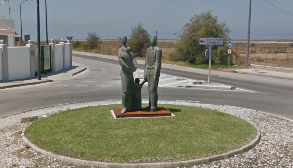 El Ayuntamiento de San Fernando ha retirado la escultura dedicada a la familia que se situaba en una de las rotondas de la carretera de Camposoto, llamada Batería de La Ardila, a la altura de La Milagrosa, para proceder a la remodelación de la glorieta.