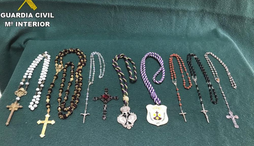 De este modo y tras arduos trabajos de investigación donde el esmero y experiencia de los agentes ha sido un factor fundamental, sorprendieron de forma flagrante en la vía pública a dos personas, sobradamente conocida por los agentes por antecedentes similares y su condición de toxicómanos, portando entre sus pertenencias las joyas eclesiásticas momentos antes de haberlas intercambiado por drogas.