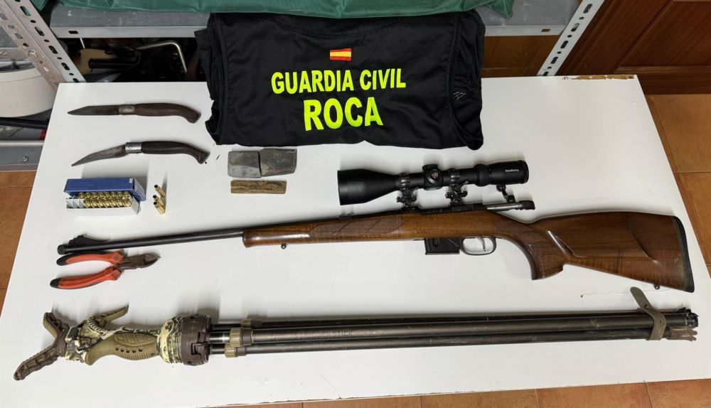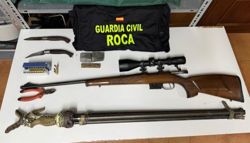 Tras más de diez minutos de huida, los agentes pudieron bloquear al vehículo y reducir a los sospechosos, que se emplearon con una actitud agresiva y violenta. Una vez reducidos, se halló en el interior del vehículo una navaja de grandes dimensiones, un arma de fuego y su munición y un trípode utilizado presumiblemente para apoyar el arma y no fallar el disparo. Además, en la parte trasera del vehículo fueron halladas dos mochilas de grandes dimensiones que contenían unos 50 kilos de carne aproximadamente.