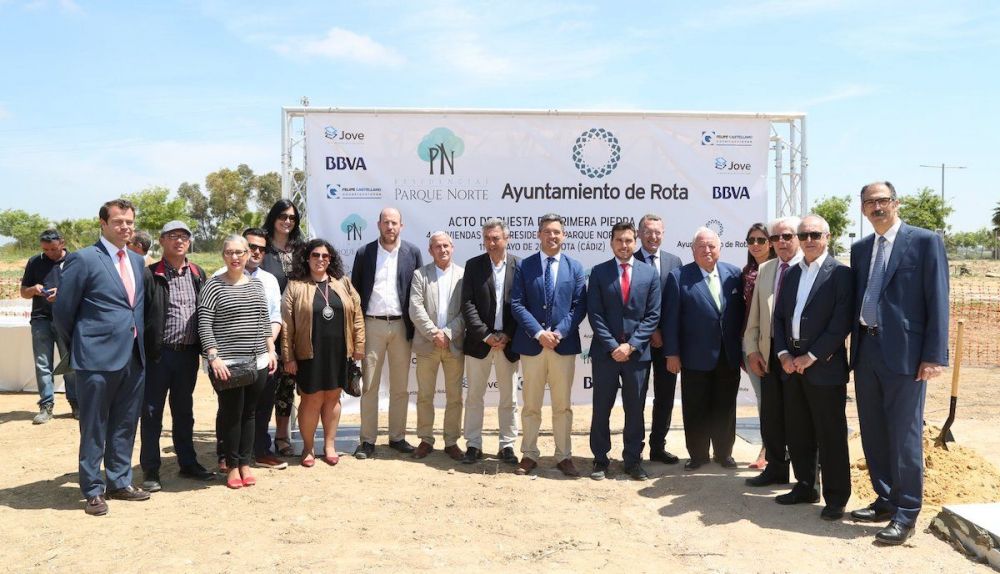 Rota es el primer municipio que, siete años después, construirá viviendas protegidas en la Costa Noroeste. El Ayuntamiento puso la primera piedra de la primera fase del Residencial Parque Norte, en la que se construirán 44 viviendas de VPO que permitirán la creación de 240 puestos de trabajo y una inversión de once millones de euros.