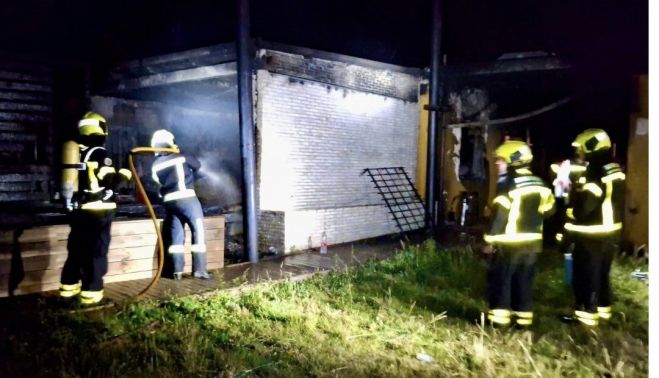 En el transcurso de las labores de extinción, los bomberos detectaron una gran llamarada originada por la combustión de unas 35 garrafas de gasolina, cada una con una capacidad aproximada de 25 litros, que ardían en su totalidad. El incendio afectó todas las instalaciones, incluyendo un escenario de madera ubicado en la parte exterior del recinto.