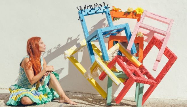 Porque esas sillas, que ella ha fabricado, y que pondrá todas en su cabeza en una representación del peso que cargan las mujeres, no sólo tienen que ser el espacio al que condenaban a las niñas a mantenerse quietas. En Andalucía, en La Isla, dos sillas, un patio y unas vecinas siempre ha sido sinónimo de alegría, raíces, tradición, comadreo y, en su caso, de su propia historia.