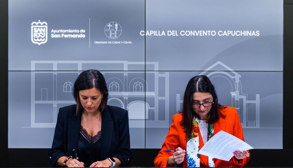 La alcaldesa de San Fernando, Patricia Cavada, ha formalizado hoy con el Obispado de Cádiz y Ceuta la cesión anticipada del uso de la capilla del antiguo Monasterio de Clarisas Capuchinas, una vez se ha tramitado la calificación de la misma como equipamiento público, lo que permitirá al gobierno local proponer que se convierta en un espacio cultural y futura sede del Consejo Local de Hermandades y Cofradías de San Fernando.