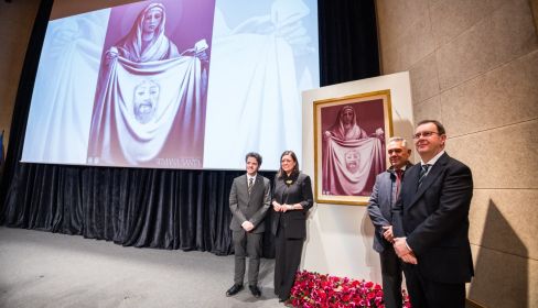 Por su parte, el autor Alfredo Martínez explicó que la Santa Faz ha sido un tema recurrente en su trayectoria. Recordó su primer trabajo para la Semana Santa, el paño de la Verónica de 2018, y señaló que ahora traslada la idea al lenguaje de la cartelería, mostrando a Jesús Nazareno “mirándonos de frente”. Para el artista, los ojos del Señor “llenos de mansedumbre” resumen lo que significa la Semana Santa: “Él es el centro de todo, el corazón de nuestra historia y nuestra fe”.