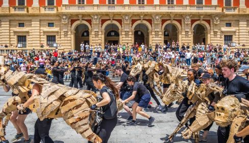 Las calles de San Fernando se han transformado en un escenario único. Animales salvajes de tamaño real han tomado vida. Las marionetas gigantes de elefantes, jirafas, cebras, ñus, simios, antílopes y leopardos han desfilado por el centro con sus movimientos realistas y su imponente tamaño. Esta es la primera parada europea del proyecto internacional La Estampida (The Herds), que busca concienciar sobre la emergencia climática a través de una experiencia visual impactante.