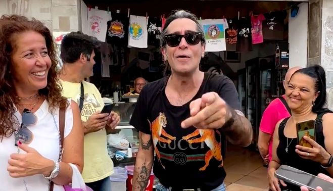 Al salir de un pequeño comercio, donde compró recuerdos relacionados con Camarón de la Isla, varias personas lo reconocieron y empezaron a hacerse selfies. Al mismo tiempo, Vaquerizo le pedía a uno del grupo que le acompañaba, entre ellos las Nancys, que le grabara una palabras de elogio hacia el genial cantaor: “Estoy en San Fernando la tierra de Camarón que es lo más grande del mundo”, proclamaba el cantante a las decenas de personas que le rodeaban en ese momento.