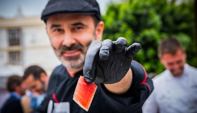 En esta décima edición, la Feria Solidaria de Cortadores de Jamón se ha celebrado con importantes novedades, desde la propia ubicación en un escenario céntrico y monumental como es la plaza del Rey hasta la cifra de cortadores. Además, no solo se ha degustado jamón, sino también montaditos, lo que amplía las opciones para todos los asistentes. La jornada ha estado amenizada por el grupo isleño ‘Sincronizados’ para crear un ambiente aún más especial.
