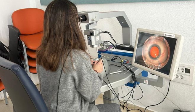 El aprendizaje de la cirugía oftalmológica requiere una larga curva de aprendizaje por la necesidad de familiarizarse con el uso de un microscopio quirúrgico y por el reducido tamaño del campo. Con la formación en San Carlos, denominada ‘Abordajes oftalmológicos en escenarios simulados’ (que comenzó el pasado lunes y finaliza el viernes), se pretende que el médico interno residente (MIR) de segundo año adquiera los conocimientos y habilidades necesarias para aproximarse a las cirugías propias de esa etapa, fundamentalmente de cataratas.