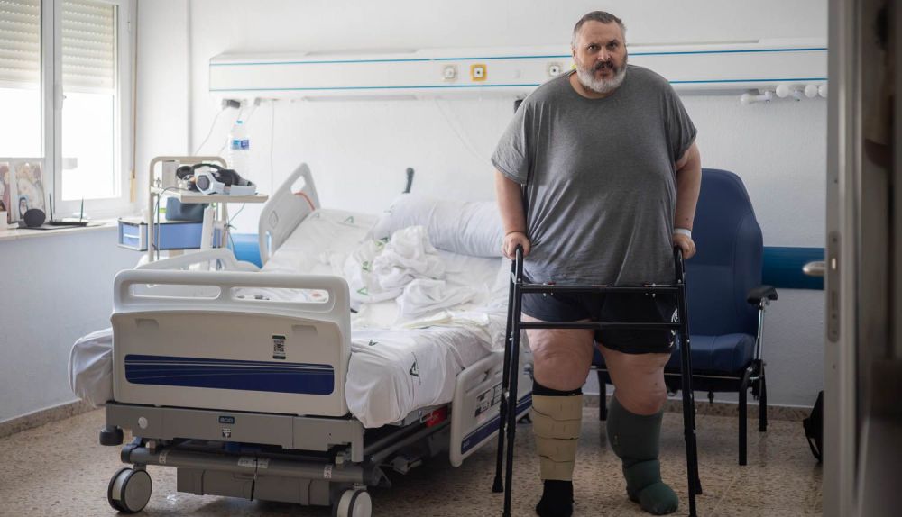 Nadie diría que mañana martes vaya a ser intervenido, a tenor de la tranquilidad que transmite. Lo que sí es evidente es la nueva pérdida de peso que José María Fernández Cervera ha experimentado en tres meses desde que lavozdelsur.es fuera a visitarlo al Hospital Puerta del Mar de Cádiz. Casi 200 kilos menos desde los 350 kilos que llegó a pesar a unos 160 que puede registrar hoy en día. Eso sí, sin contar la pierna afectada por elefantiasis que acumula muchísimo líquido y que llega a pesar casi 20 kilos, calcula.