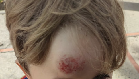 En este patio disfrutan a diario niños y niñas de entre tres y cinco años. Sin embargo, la isleña apunta que no está en buenas condiciones desde hace muchos años y que las raíces de los árboles han levantado el suelo, dando lugar a salientes que suponen un riesgo. "Estaba trabajando y la persona que lo recogió y lo llevó corriendo al médico me ha dicho que la foto no es nada en comparación a cómo tenia mi hijo la frente", lamenta.