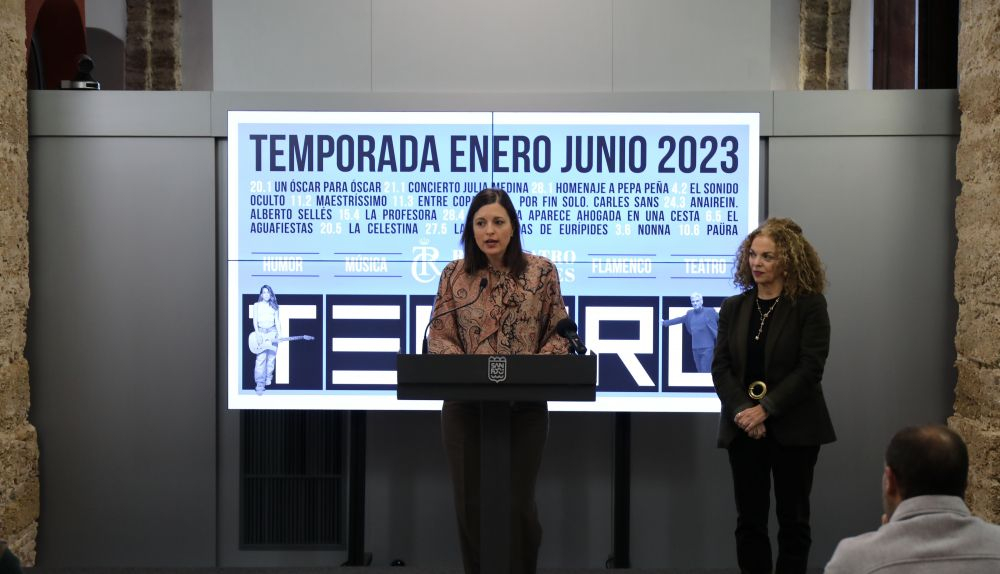 La alcaldesa de San Fernando, Patricia Cavada, y la delegada de Cultura, Mar Suárez, han presentado hoy la programación de la primavera 2023 en el Real Teatro de las Cortes, una oferta variada, de calidad y para todos los públicos que incluye una quincena de citas desde enero a junio.