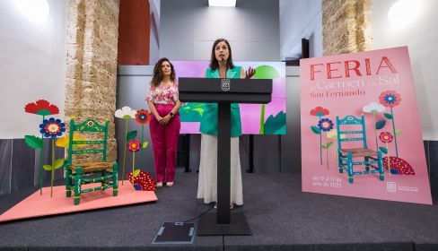 El cartel de la Feria del Carmen y la Sal de San Fernando 2023, presentado durante la rueda de prensa, se inspira en la iconografía de los años 60 y 70 del siglo XX y rinde homenaje “a la sencillez y la identidad de algo tan familiar y tan propio de las ferias como la silla de enea y madera”. Su autora es la fotógrafa y artista visual canaria María Laura Benavente, quien firma sus obras como Mililitros y que desde hace más de una década trabaja perfeccionando el papercraft, una cuidada técnica que emplea el papel como instrumento para crear figuras tridimensionales con un gran impacto visual.