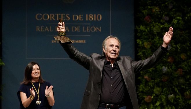 Serrat ha provocado tras estas palabras un encendido aplauso de los asistentes a la ceremonia de entrega de este premio en el Real Teatro de las Cortes, el mismo escenario en el que hace 215 años, el 24 de septiembre de 1810, diputados de distintos lugares de España e Iberoamérica se reunieron en unas Cortes que fueron "una reacción contra el absolutismo" y la semilla de la primera constitución que recogía los principios básicos de la democracia.