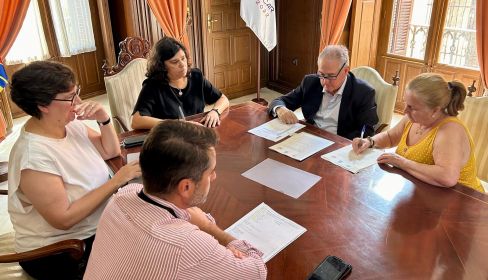 El Ayuntamiento de Sanlúcar continúa con el proceso de otorgamiento de escrituras de propiedad de las viviendas de la barriada El Palomar que gestiona la Delegación Municipal de Vivienda. En esta ocasión se han firmado nuevas escrituras en el Palacio Municipal en un acto que ha presidido la alcaldesa, Carmen Álvarez, acompañada por la delegada de Vivienda, Mónica González. La alcaldesa y las propias familias las han rubricado en presencia de notario.