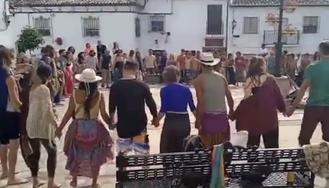 A la 'Familia Arcoíris' se le ha acabado el tiempo. Pretendían permenecer 28 días en una finca privada ubicada en Parque Natural de la Sierra de Grazalema, a unos tres kilómetros de Benaocaz, en Cádiz. Sin embargo, las más de 100 personas que llevan unas dos semanas acamapadas ilegalmente en esta zona van a tener que buscar otro lugar.