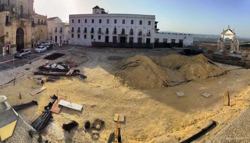 Los responsables municipales han lamentado la paralización de la obra por parte de la empresa adjudicataria que solicita mayor inversión económica para continuar con el proyecto. Esta petición, según el alcalde, Miguel Rodríguez, “no se puede cumplir”, ya que el proyecto de la plaza del Cabildo cuenta con un "presupuesto cerrado" proveniente de un fondo económico europeo: “Europa aporta el dinero y la Junta se encargaba de licitar la obra y pagar a la empresa adjudicataria”.