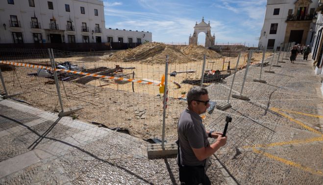 La plaza del Cabildo continúa llena de escombros. El tiempo no parece haber pasado en el casco antiguo de Arcos, donde las obras de remodelación de este histórico lugar continúan paralizadas. El proyecto estuvo impulsado por el anterior gobierno del PSOE y pretendía convertir la localidad en Ciudad Amable con la financiación de 1,2 millones de euros procedentes de los fondos ITI. Pero los planes no han salido como esperaban.