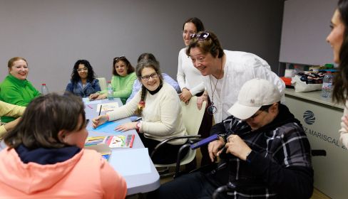 El cuarto pilar es el voluntariado: un programa con dos líneas de actuación, el acompañamiento a personas mayores que se sienten solas, y las actividades semanales con personas con discapacidad —talleres de manualidades, salidas, clases de flamenco, visitas a fiestas de los pueblos de alrededor..—. Cuenta con unos 15 o 20 usuarios fijos.