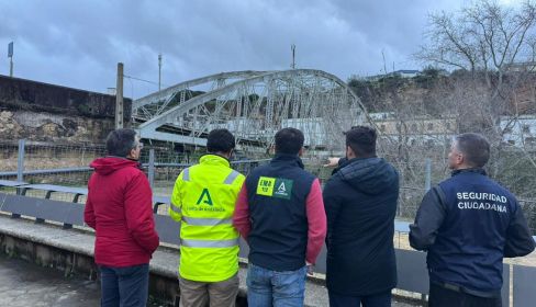 El Ayuntamiento de Arcos de la Frontera lleva a cabo una actuación técnica preventiva de carácter urgente en el entorno del puente de San Miguel, conocido popularmente como puente de hierro, después de detectarse la cesión de un tercer pilar de la estructura como consecuencia directa de la crecida del río Guadalete este viernes 31 de enero. El alcalde, Miguel Rodríguez Rodríguez, ha comparecido ante los medios este sábado para informar de los últimos avances.