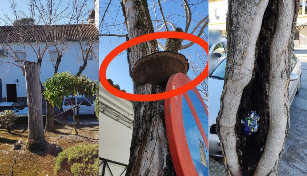 En las mismas se pueden ver árboles de la localidad serrana que son usados como papeleras, que están podados de manera salvaje o que tienen hongos.