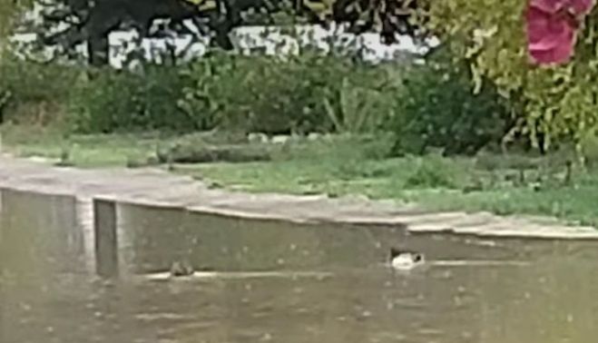 Dos patos nadando en una acumulación de agua en la avenida del Corregidor. "Tenemos hasta patos cuando llueve, sigo viendo lo mismo cada vez que llueve después de 37 años que llevo viviendo aquí", expresa el vecino, que pide a las autoridades competentes que realizan las labores oportunas para evitar este tipo de anegaciones.