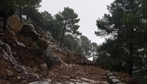 Un desprendimiento de tierra, rocas y árboles ha afectado a la carretera del Puerto de Las Palomas, en la Sierra de Cádiz, donde se ha producido un desmonte de consideración que podría haber sido provocado por la acumulación y arrastre de agua. Agentes de la Guardia Civil y de la Policía Local se han desplazado hasta la zona para controlar la situación y garantizar la seguridad de los conductores.