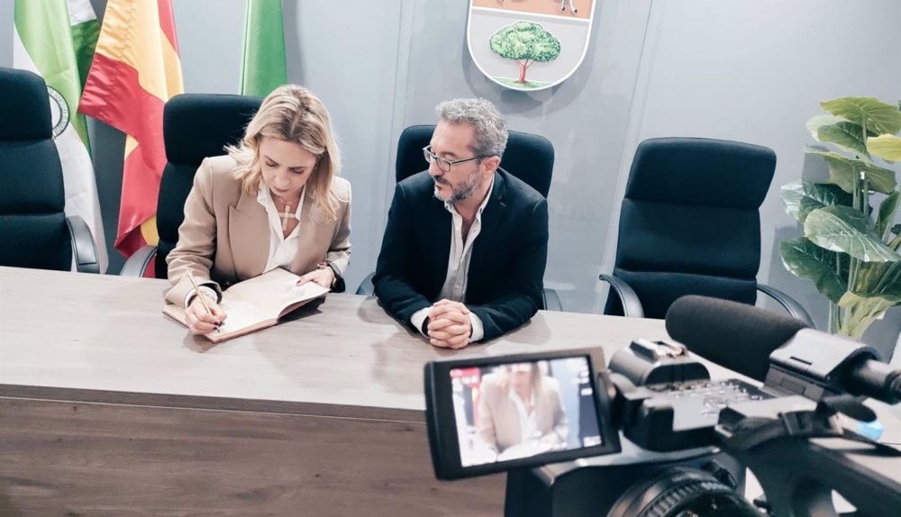 La visita al municipio incluyó un recorrido por las calles de Puerto Serrano, con parada en la biblioteca municipal y la avenida de las Escuelas, donde la Diputación financia varias actuaciones, además de la protocolaria firma en el Libro de Honor del Consistorio.