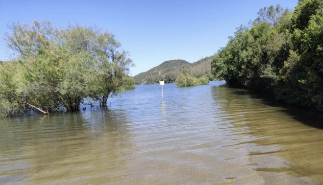 Las lluvias de Semana Santa fueron benditas para una Sierra de Cádiz que todavía está disfrutando del agua caída. El perfil Ubrique en verde ha compartido en redes una imagen de las dos carreteras que conectan con la cola del embalse de Los Hurones y que permanecen intransitables debido a la acumulación de agua en las mismas.