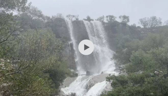 Una velocidad de salto de agua impresionante tras los 440 litros por metro caídos en la localidad payoya desde el pasado viernes, justo cuando hizo acto de presencia una borrasca que alivia en parte la pésima situación de presas y embalses de la provincia.