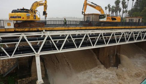 Los embalses de Bornos y, especialmente, el de Arcos se encuentran en situación crítica. Las compuertas están abiertas con un desembalse de 450 metros cúbicos por segundo, su capacidad máxima, pero esta cantidad no es suficiente para compensar el aumento del nivel del agua. Ante esta situación de nerviosismo, la maquinaria pesada ha llegado para la apertura manual de las compuertas de Arcos.