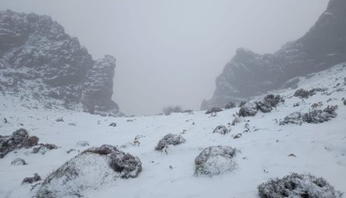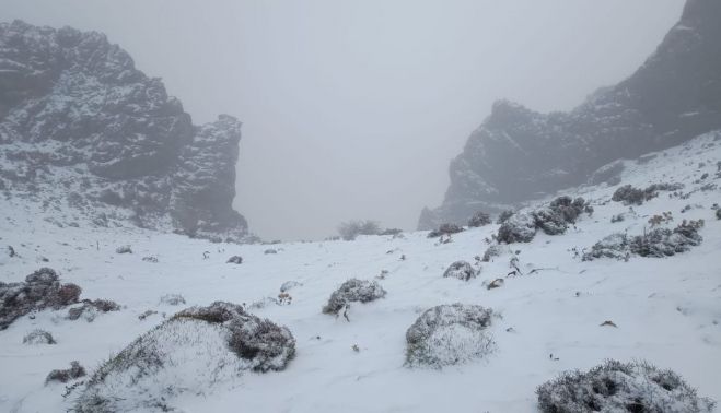 Las cimas de El Simancón y El Reloj han sido las encargadas de recibir a la nieve en una jornada de mucho frío.