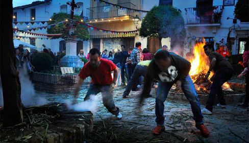Las calles encaladas del casco antiguo se llenan entonces de humo, color y estruendos: el de los gamones “crujíos”, tallos de una planta silvestre que, al ser calentados en la hoguera y golpeados contra una piedra, explotan con fuerza si se ejecuta con pericia.