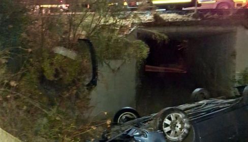 Ya de madrugada, a las 03:05 horas, se registró el tercer accidente, esta vez en el kilómetro 58. En este caso, el vehículo implicado se salió de la vía y quedó en una posición de riesgo, con la amenaza de caer por un terraplén. Los bomberos tuvieron que asegurar el coche antes de poder rescatar a los ocupantes, a quienes finalmente lograron sacar a través de las puertas traseras.