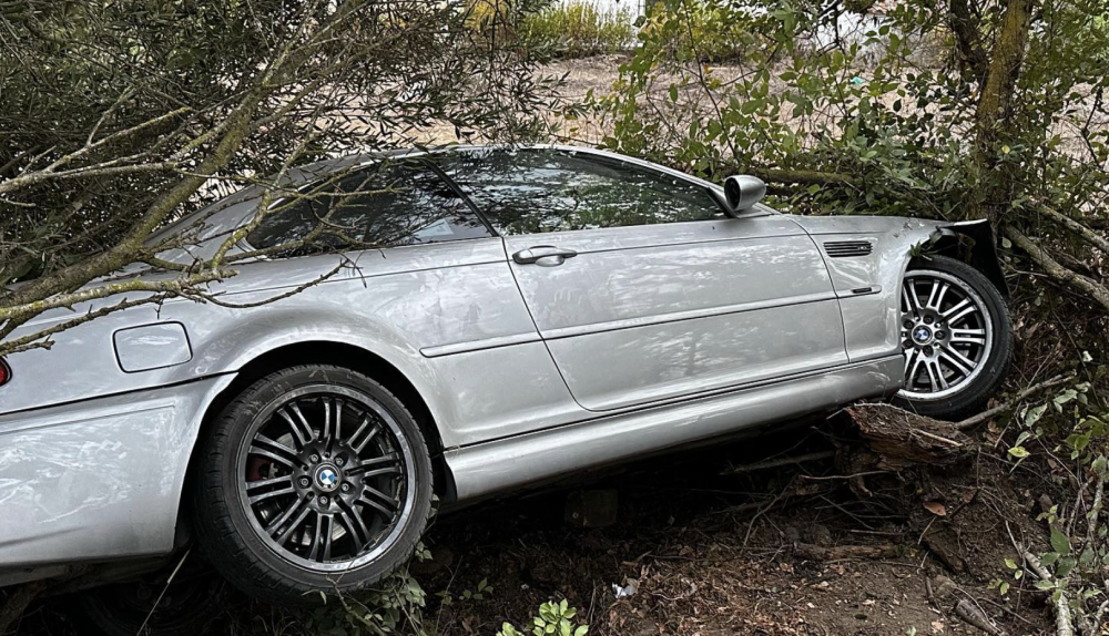 El coche acabó empotrado contra un tronco y atascado entre los arbustos de las cunetas por lo que la Policía Local tuvo que intervenir en el suceso.