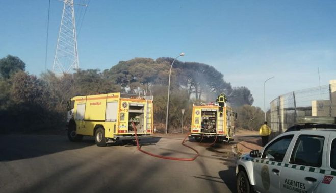 La Policía Local de Puerto Real junto a Bomberos del Consorcio de Cádiz han procedido a sofocar un incendio en la barriada Río San Pedro. El humo se ha detectado en la zona del pinar, justo debajo de un poste de luz. Los efectivos han acudido de inmediato para evitar males mayores ya que, si el fuego llega a alcanzar el cableado eléctrico podría haber ocurrido un incidente de mayor gravedad.