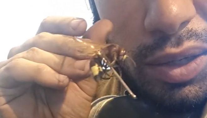 "No la he visto yo en mi vida, será una avispa asiática de esas. ¿Esto se come?", añade mientras muestra el avispón. La primera vez que esta especie, que tiene el doble de tamaño que una normal, se detectó en la provincia de Cádiz en 2012.