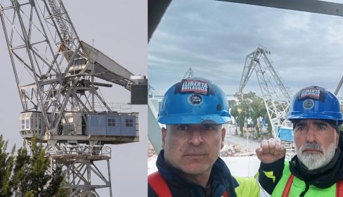Desde la grúa, Manuel Balber afirma tajante: "No nos bajaremos sin una solución. Si nos bajamos sin nada, no vamos a conseguir trabajo aquí nunca más. Y la única manera de arreglarlo es aguantar aquí lo que haga falta. Si tenemos que estar un mes, estaremos, eso seguro".
