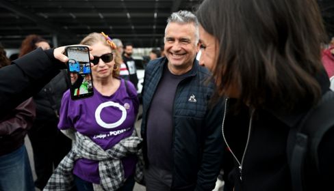 "Navantia ha puesto más de 30 vigilantes para impedir que los trabajadores lleven baterías de móvil a Manolo y Jesús, que siguen subidos a una grúa por el fin de las listas negras", denuncia la europarlamentaria Irene Montero, de Podemos, que este fin de semana intentó entrar en las instalaciones de Navantia sin éxito.