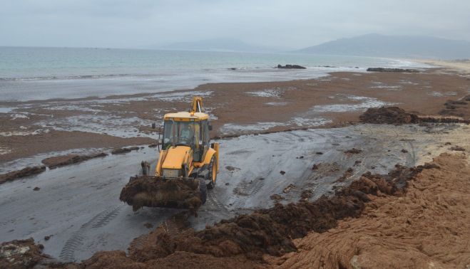 El Ayuntamiento de Tarifa ha recogido más de 4.000 toneladas de alga invasora asiática 'regulopterix okamurae' en dos actuaciones llevadas a cabo durante los meses de verano en un espacio de unos 400 metros lineales. La recogida se ha realizado en dos actuaciones hechas en la playa de Los Lances, en la zona conocida como la del Balneario, sobre 400 metros lineales y con una anchura de unos diez metros.