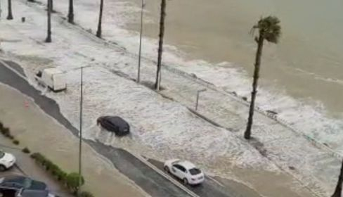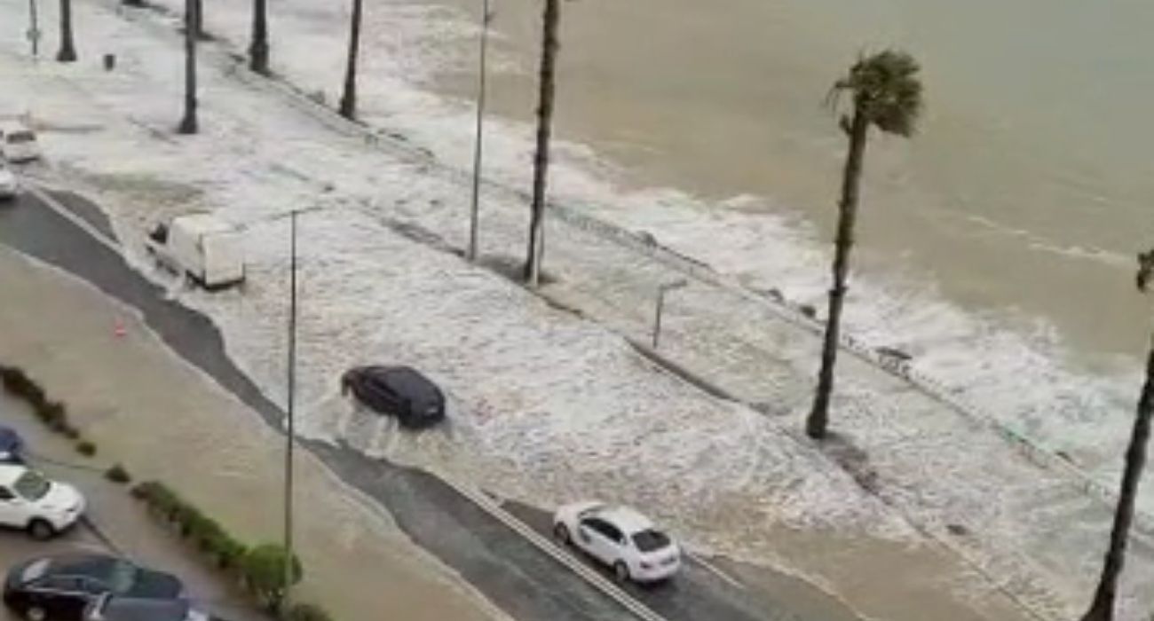 El temporal inunda el paseo marítimo de Poniente. Se recomienda a conductores acceder a #LaLíneaDeLaConcepción por la entrada alternativa de la carretera de las industrias pic.twitter.com/hRVO7BU5c9