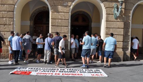 La plantilla de Tranvía de Cádiz a San Fernando y Carraca, formada por 240 trabajadores, secunda los paros de forma unánime, con la aplicación de servicios mínimos del 50% de la flota habitual y del personal.
