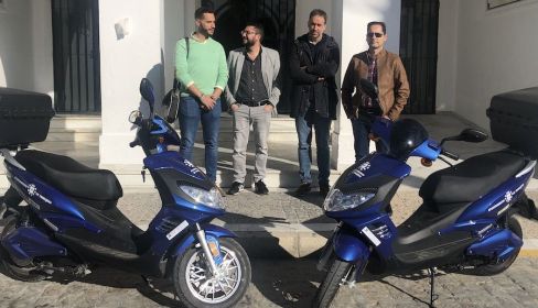 La Diputación de Cádiz ha entregado al Ayuntamiento de Trebujena dos motocicletas eléctricas para el servicio municipal, que sustituyen a una moto de gasolina que tenía 20 años de antigüedad. Durante la visita a la localidad, el responsable del área de Transición Ecológica, Mario Fernández, también ha comprobado junto al alcalde, Jorge Rodríguez, el equipamiento de juegos en un parque infantil.