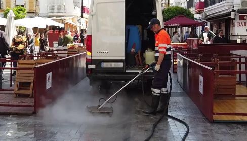 La empresa municipal de la limpieza de Sanlúcar de Barrameda ha estrenado una nueva máquina para limpiar las calles de la ciudad. Coincidiendo con el inicio de la Semana Santa, donde los restos de la cera suponen un verdadero problema en las ciudades andaluzas, el consistorio de esta localidad gaditana ha decidido iniciar las labores de limpieza con esta hidrolimpiadora.