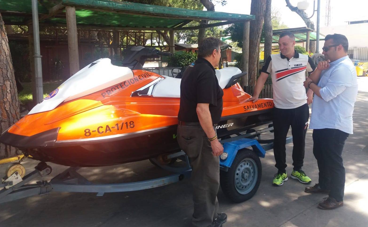 Protección Civil incorpora una nueva moto acuática para reforzar las labores de salvamento en la zona de Chorrillo de Rota. El Ayuntamiento añade a su flota una nueva moto acuática especialmente equipada para reforzar las labores de salvamento y rescate en playas.